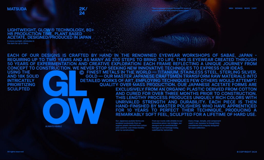 Project Type:Microsite for Matsuda for the release oftheir Glow glasses